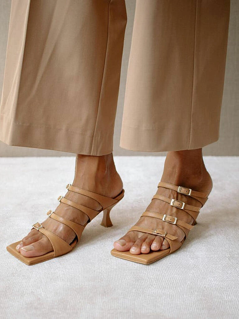 - Vier Mini-Riemen mit Schnallen sorgen für einen festen Halt bei dieser zehenoffenen Sandale mit quadratischer Sohle.