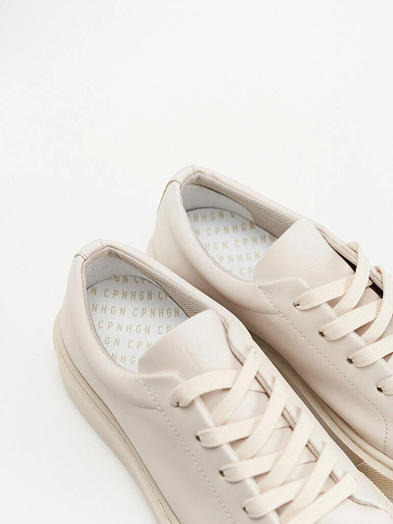 Low-top Sneaker aus Glattleder. Minimalistische Silhouette. Gestickte Details. Runde Kappe. Schnürung vorne. Flache Gummisohle. Innensohle mit Branding. Ein minimalistischer Sneaker in warmen Tönen.