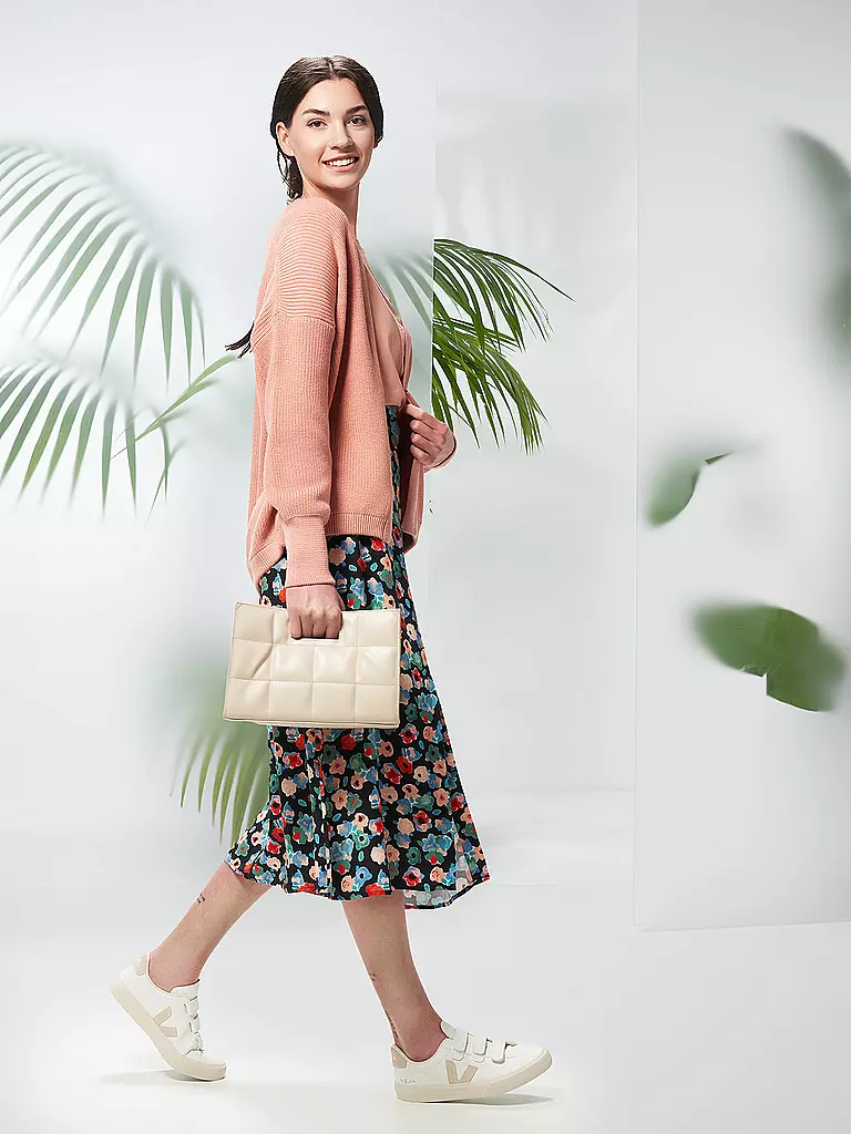 - Sohle: 19 % Naturkautschuk aus dem Amazonasgebiet, 23 % Reisabfälle, 12 % recyceltes Gummi